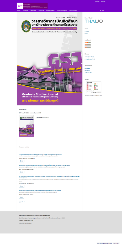 Nakhon Si Thammarat Rajabhat University provides open access to its library and seven academic journals, fostering lifelong learning and knowledge sharing for the public through the ThaiJo platform.